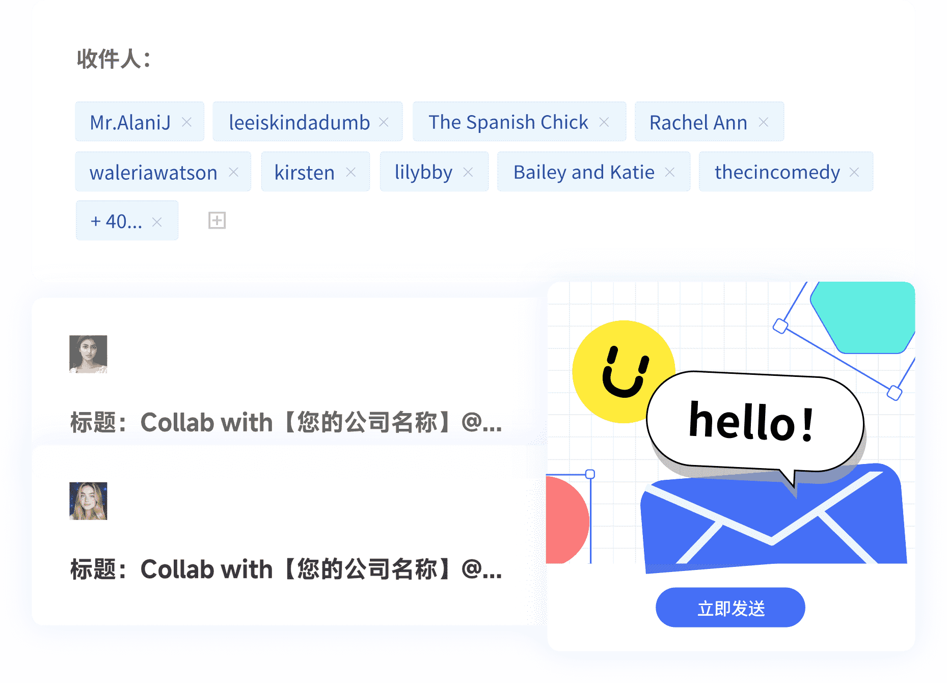 一次性批量聯系多個達人,建聯更高效,用郵件更正式哦