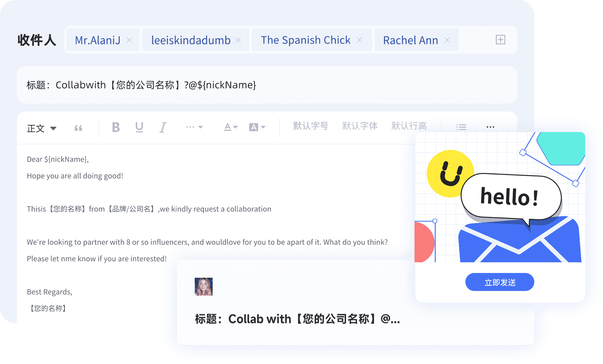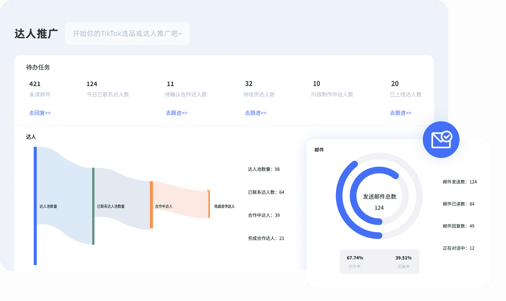 一次性批量聯系多個達人,建聯更高效,用郵件更正式哦